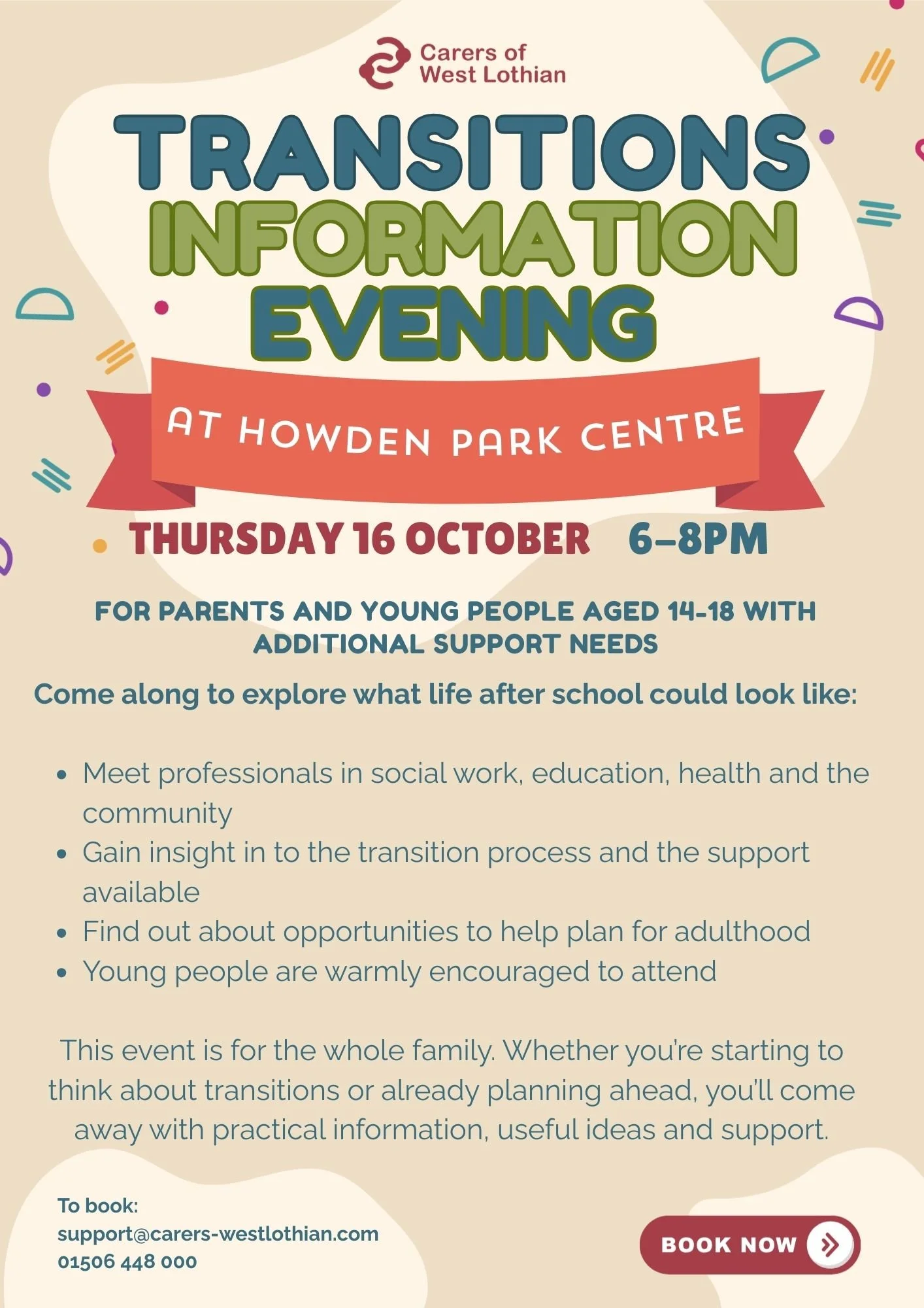 Free to attend. Booking essential via Eventrbite - https://www.eventbrite.co.uk/e/transitions-information-evening-parents-young-people-1418-with-asn-tickets-1667172992299?aff=oddtdtcreator