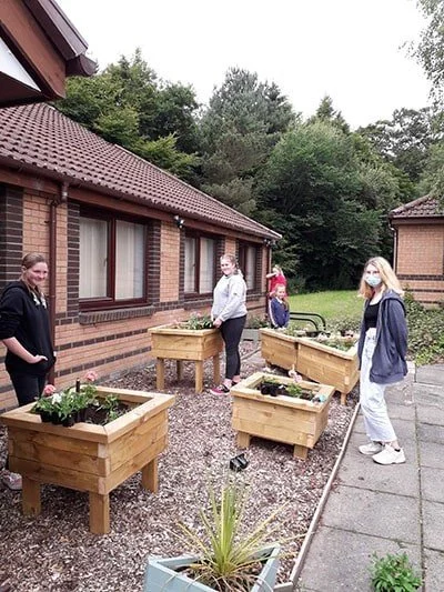 We had commissioned planters from The Armadale Shed which were made especially to be accessible by all our service users. Alas they had absolutely nothing growing in them apart from a weed or six! So, it was out with the weeds and in with some annuals; lobelia, geranium, petunia and salvia. The young carers had a lesson in ‘How to take plants out of pots’ and ‘How to plant a plant.’ Some of our young carers were a dab hand at this as gardening is what they help their cared for person with at home.