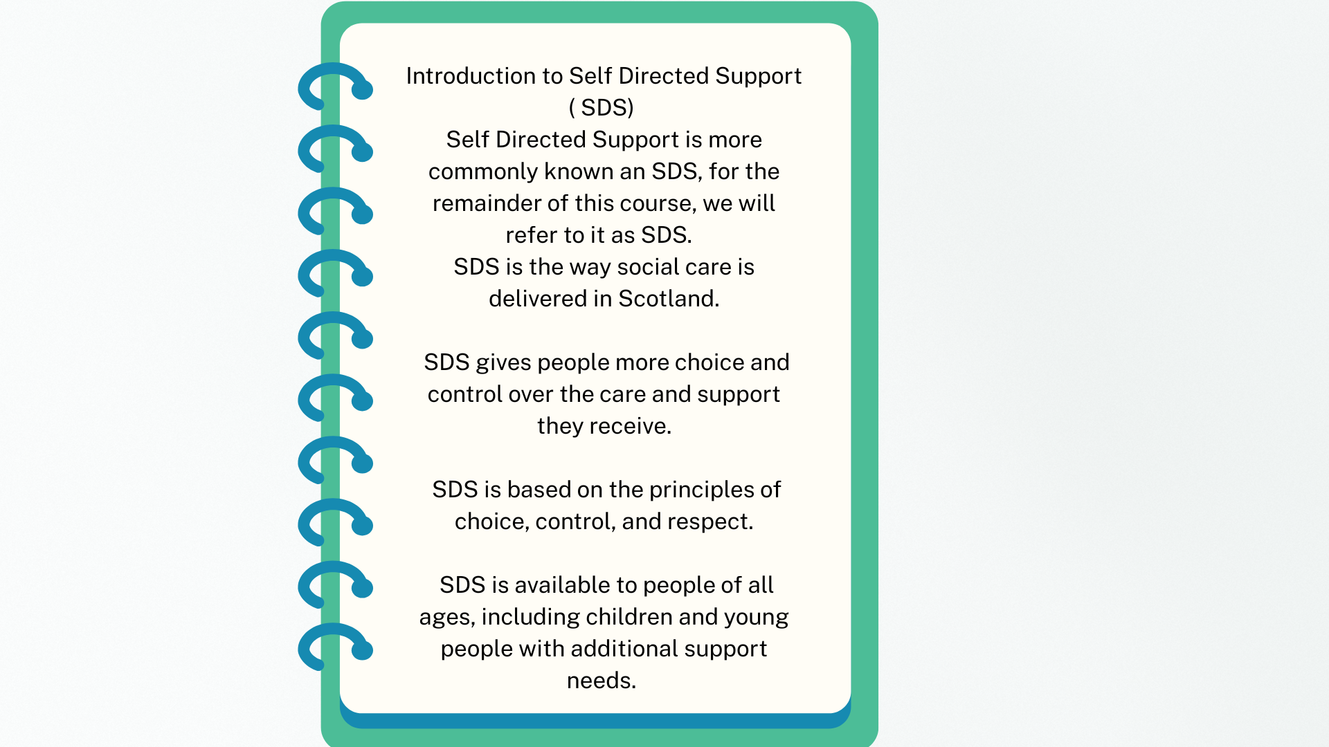 SDS means Self-Directed Support, which is all about empowering people to make decisions about their own care. You’re building good awareness keep going!